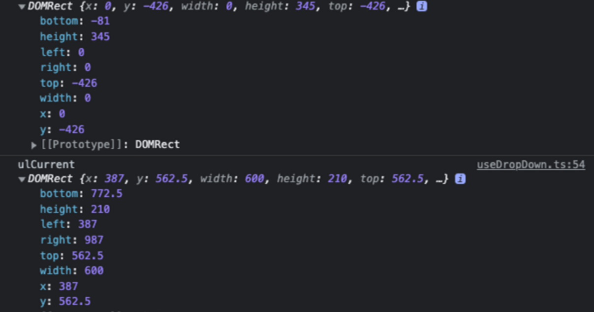 - useRef를 사용해 내가 DropDown으로 사용할 Dom 요소에 접근해서 해당 요소의 position 값을 불러온다.