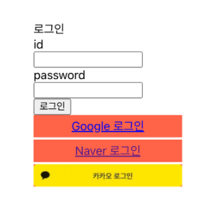 이런식으로 간단하게 만들었다. 카카오 로그인처럼 관련 이미지는 각 홈페이지 디벨로퍼에서 얻을 수 있으니 참고하기 바란다.