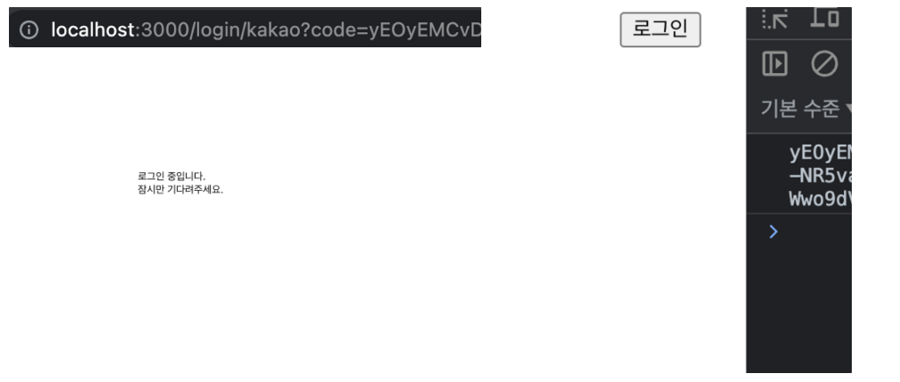 위에서 로그인을 하면 다음과 같이, url에 있는 code 값을 읽어와 사용할 수 있다. 이제 이 코드를 서버에 전달해주면 끝이 난다.